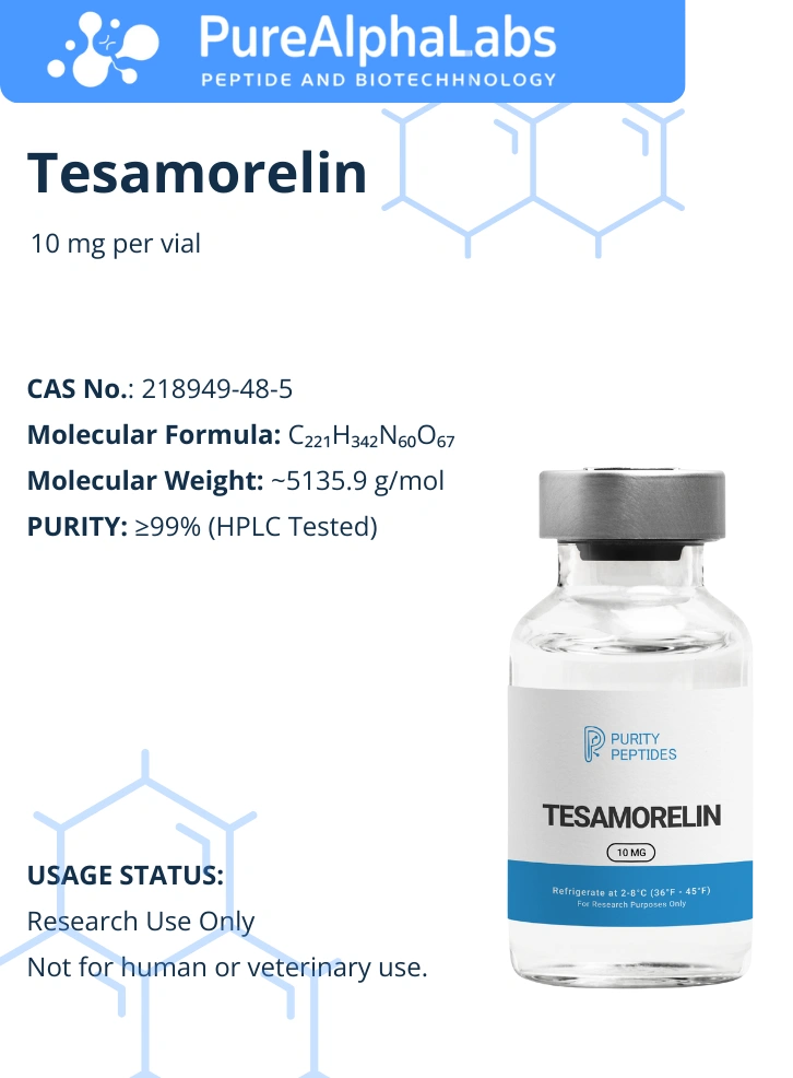 Tesamorelin is intended for research use only and is not approved for direct human or veterinary consumption. It should not be used outside regulated laboratory settings or by individuals with unverified health conditions.